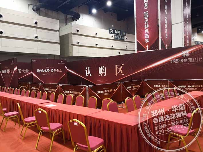华熠桌椅承接会展中心长岛国际社区开盘活动,在中国红色是一个吉利的颜色,一个喜庆的颜色,对于商家来说也很愿意用红色来布置自己的活动场地,红色的贵宾椅,红色的长条桌,都寓意红红火火,房子大卖。随着经济的发展,社会的进步,现代生活大都市不断更新的各种现代生活乐趣,而租赁出租也为许多年轻消费者带来他们渴望的新鲜感。越来越多的企业开始租用物料来开展企业的工作,这样既节省成本,又节省时间,我公司就是专业做活动物料租赁的,不仅物料齐全而且价格优惠。与我们合作不仅能节约成本还能省时省力,何乐而不为呢,所以在郑州做活动租物料就来我们华熠,一站式的服务包您满意!我公司主要业务有篷房出租,其中篷房有车展篷房、玻璃篷房、球形篷房、婚庆篷房、方形尖顶篷房、折叠帐篷供应,还有桌椅租赁服务,贵宾椅,折叠椅,沙滩椅,长条桌,折叠桌,吧桌吧椅等,还有铁马护栏、桌椅沙发、空调、单边伞、舞台等等物料价格低廉、随租随用,实现一站式供应!